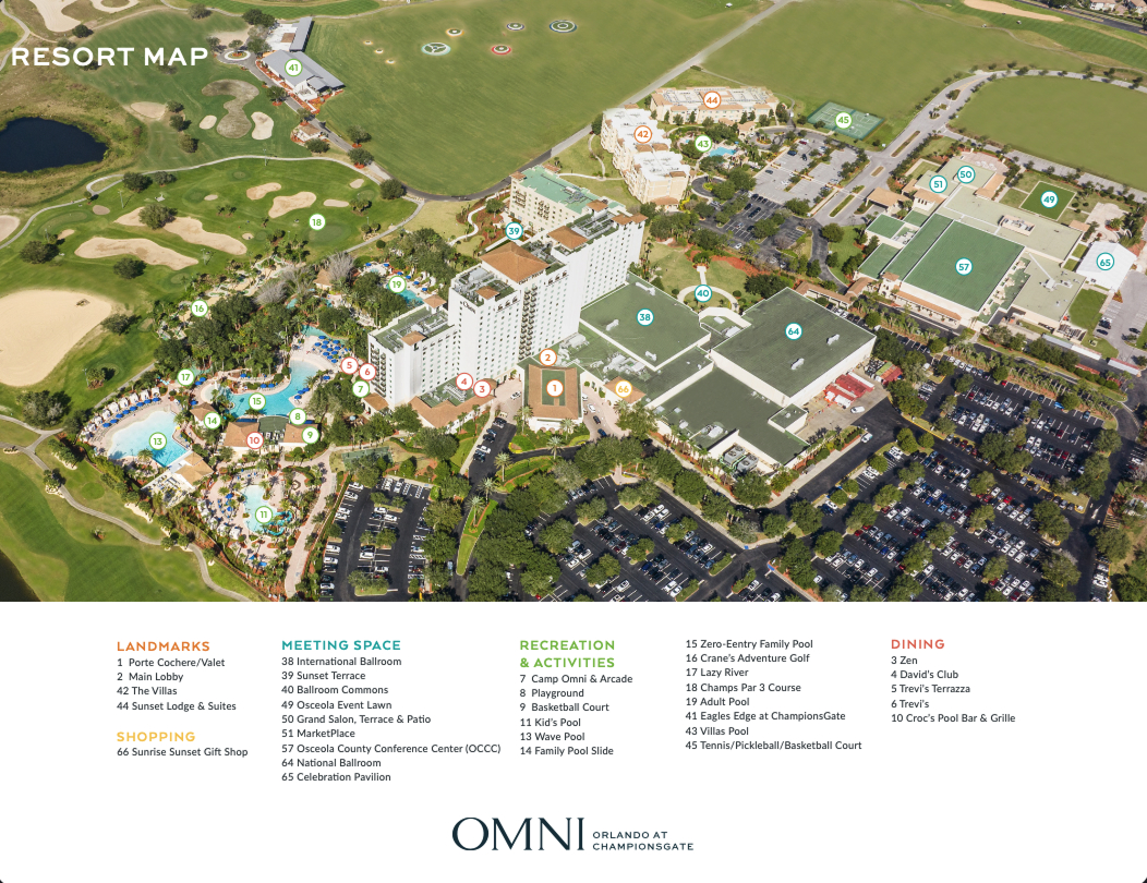All activities and sessions take place at Omni Orlando Resort. Use the maps below to find your way.